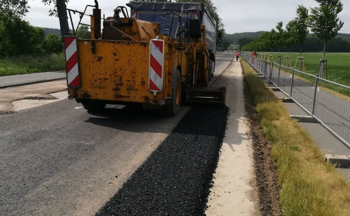 Fahrbahnverbreiterung aus Asphalt mit Fertiger